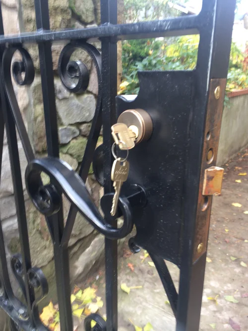 Bronze cap on blackened steel railing. The “cuff” connection becomes an elegant piece of jewelry.